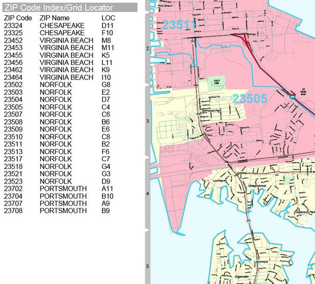 Norfolk Virginia Zip Code Wall Map (Red Line Style) by MarketMAPS